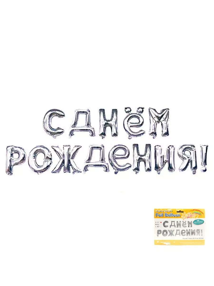 Надпись "С днем рождения" Серебро в упаковке, фольгированный шар, 43 см, 1 шт. информация: