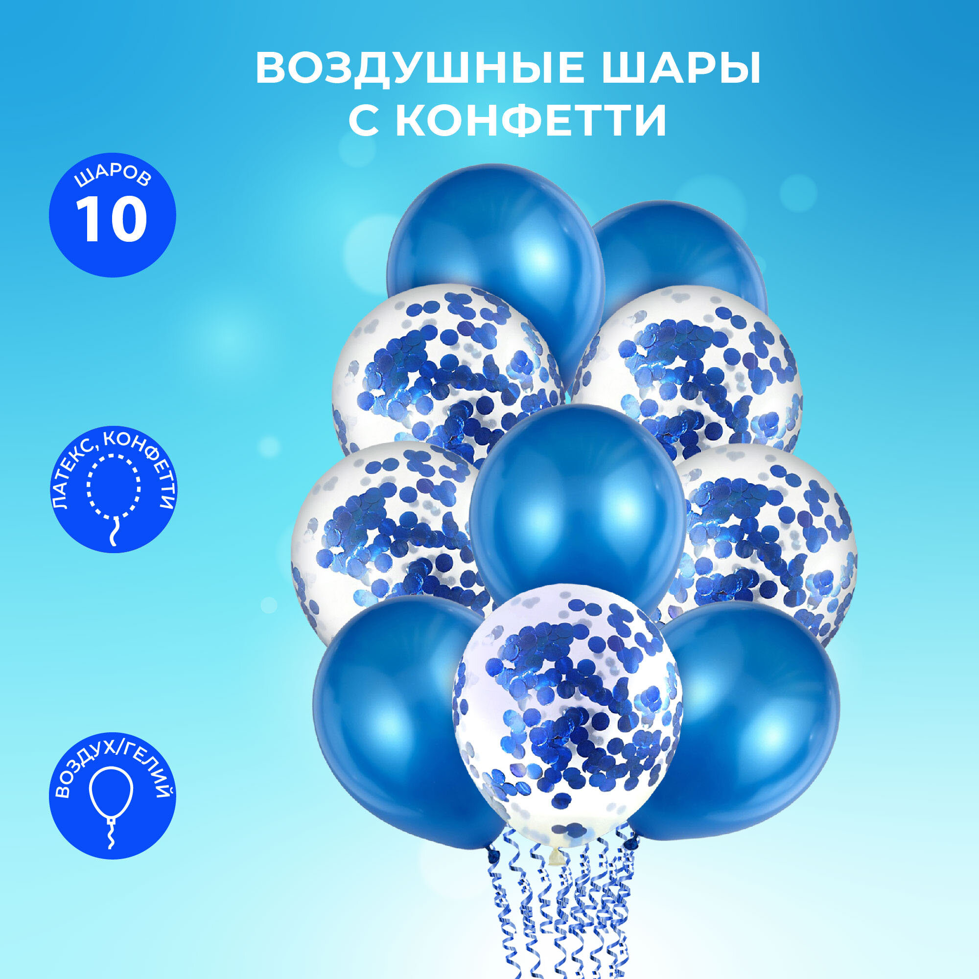10 цен на Шары воздушные с синим конфетти "Веселая вечеринка", набор 10 шт, 30 см