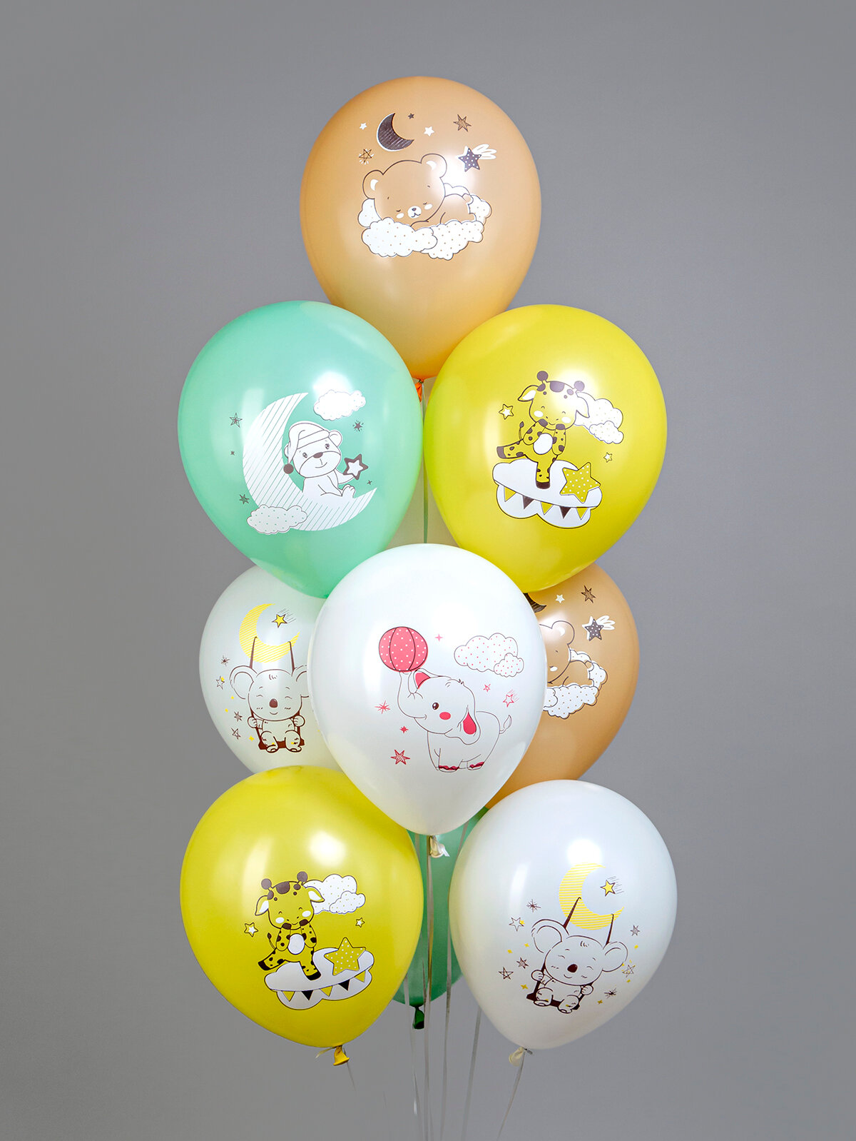 Воздушные шары на выписку, на день рождения для мальчика, девочки "Универсальные" 30 см набор 10 штук 5 дизайнов информация:
