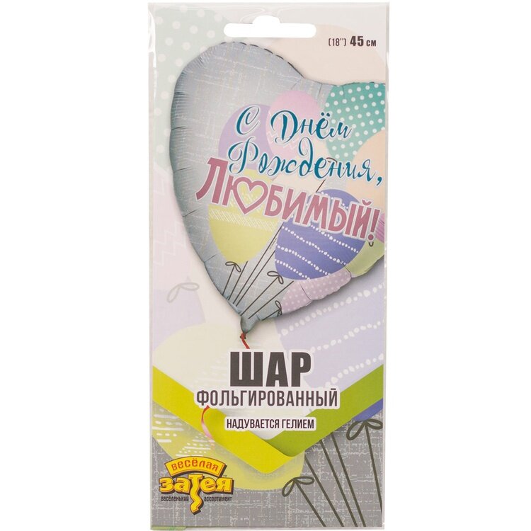 Фольгированный шар С Днём Рождения любимый Шары, 45 см, ненадутый информация: