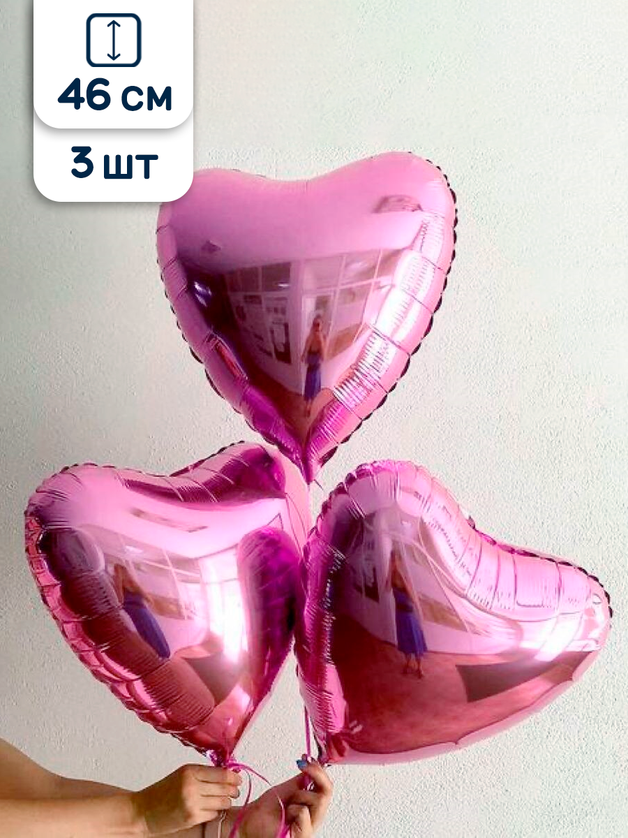 Отзывы на Воздушные шары фольгированные Agura Сердца, Металлик, Розовый, 46 см, набор 3 шт