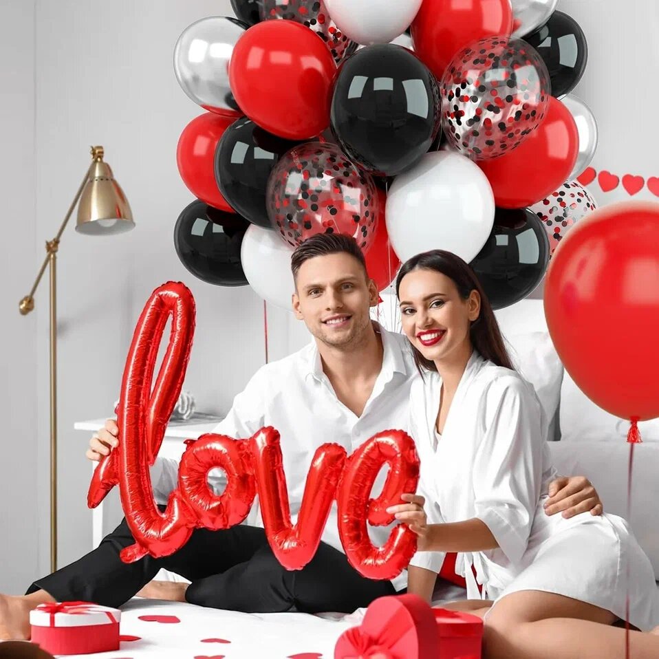 Отзывы на Воздушные шары МосШар, 50 штук, черно-красные с конфетти, диаметр 30см
