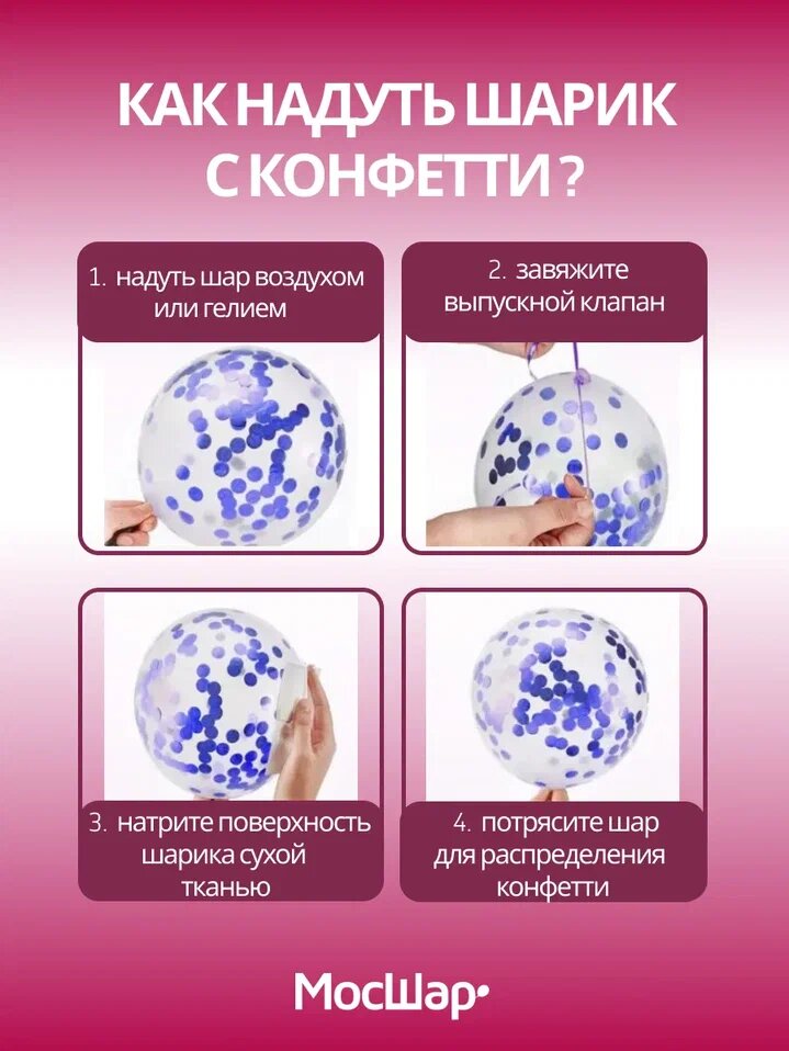 Отзывы на Воздушные шары МосШар, 50 штук, бело-фуксия с конфетти, диаметр 30см