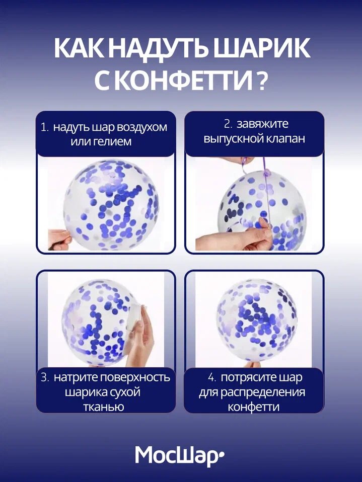 Отзывы на Воздушные шары МосШар, 50 штук, сине-голубые с конфетти, диаметр 30см