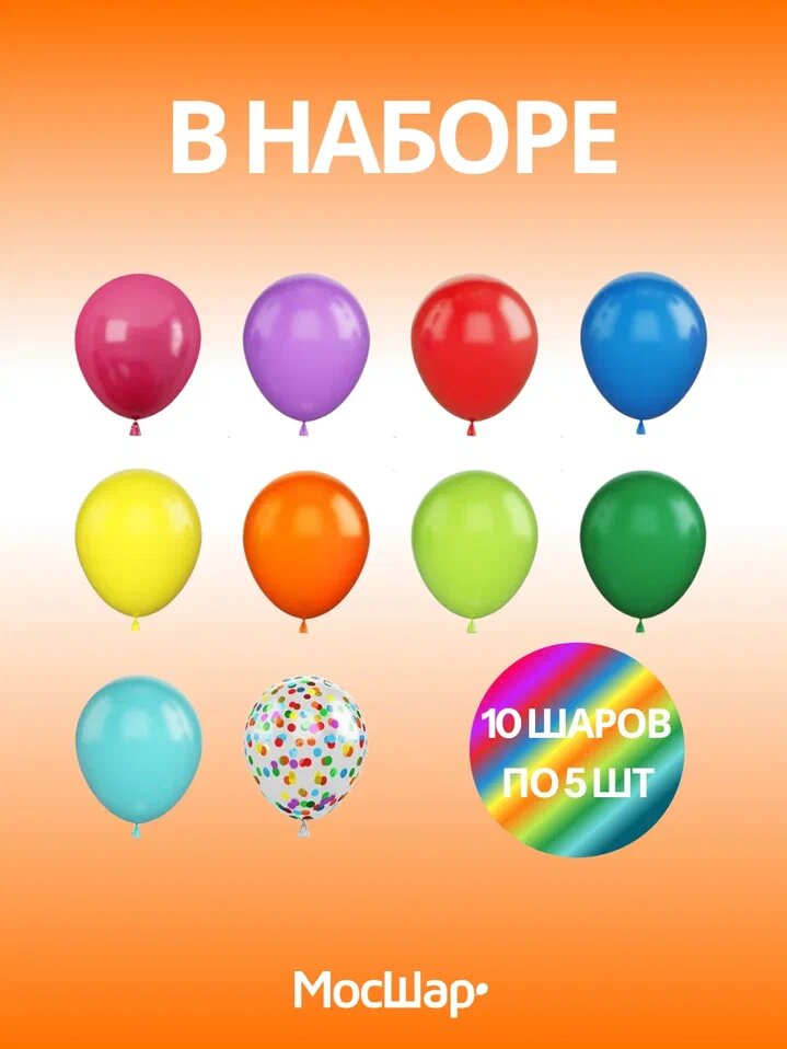 10 цен на Воздушные шары МосШар, 50 штук, разноцветные с конфетти, диаметр 30см