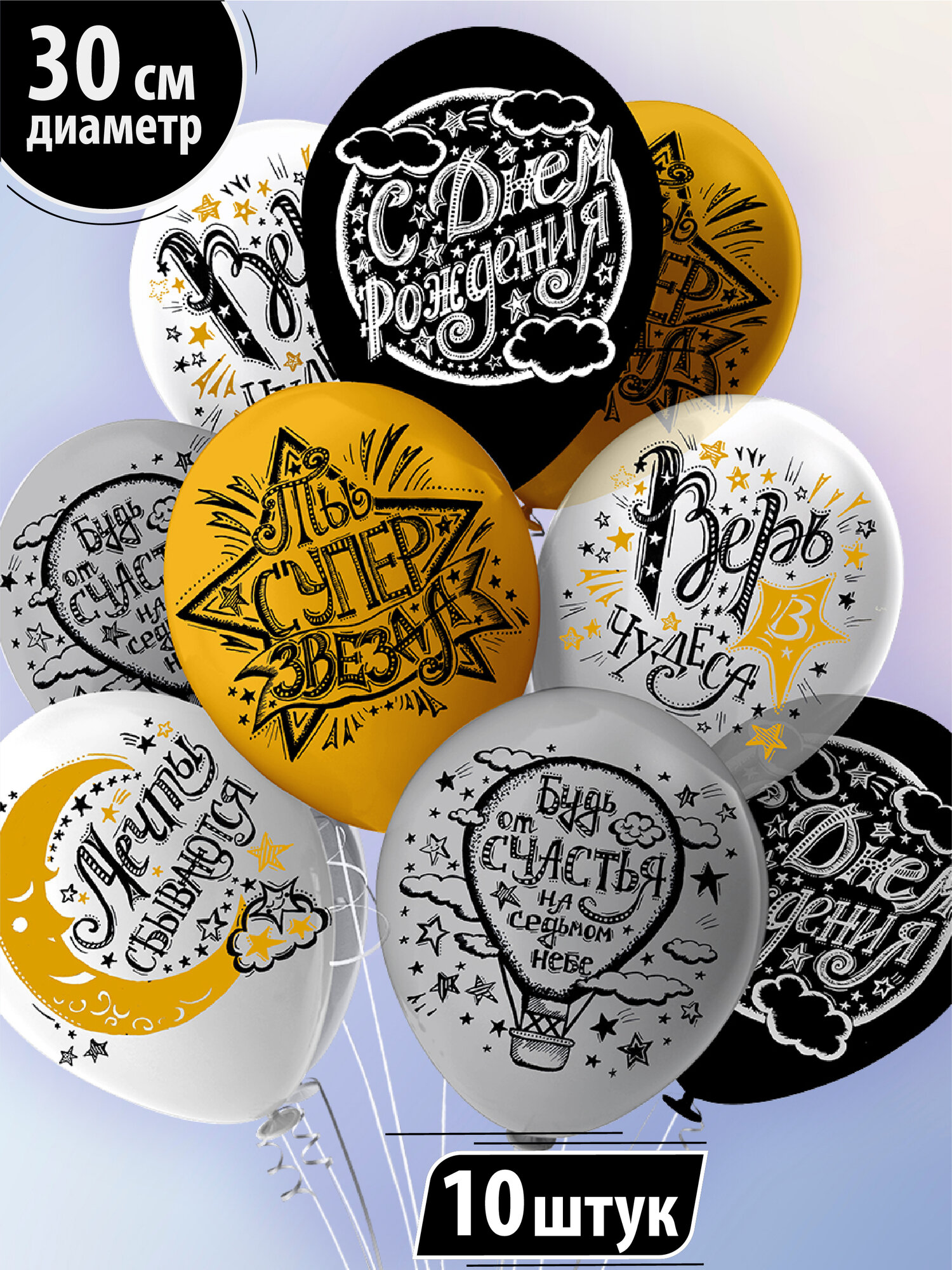 10 цен на Шарики воздушные с надписями для праздника С Днем Рождения! "Верь в чудеса!" 10 шт