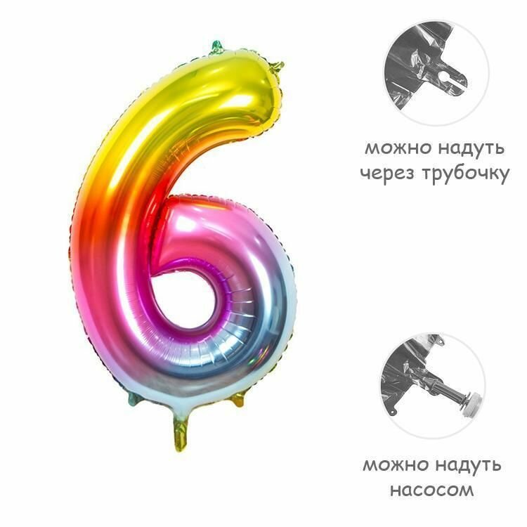 10 цен на Воздушный шар цифра 6 металлик радуга 86см Китай