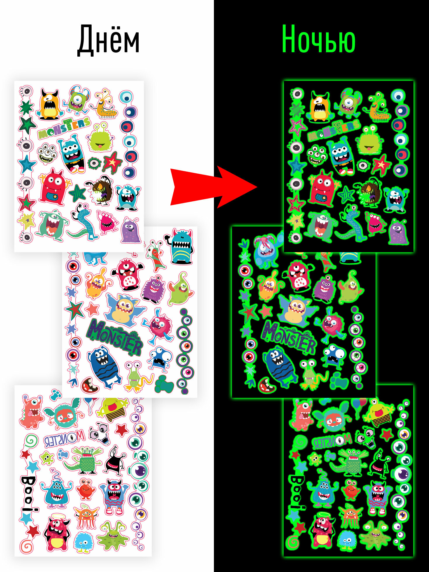 Наклейки - татуировки светящиеся "Монстрики", 3 листа ND Play информация: