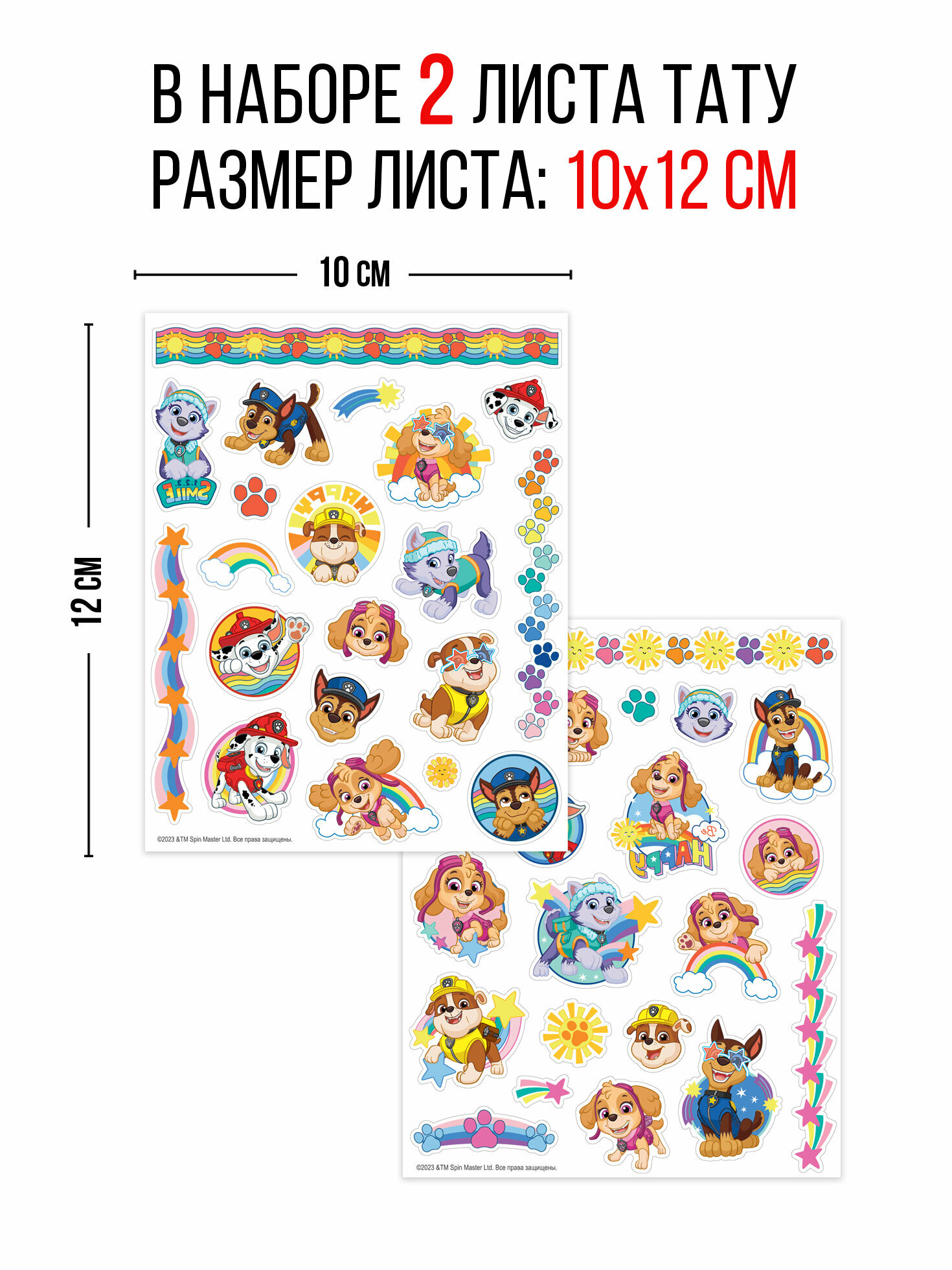 Наклейки - татуировки "Щенячий патруль", 2 листа, диз. 2 (Girls) ND Play информация: