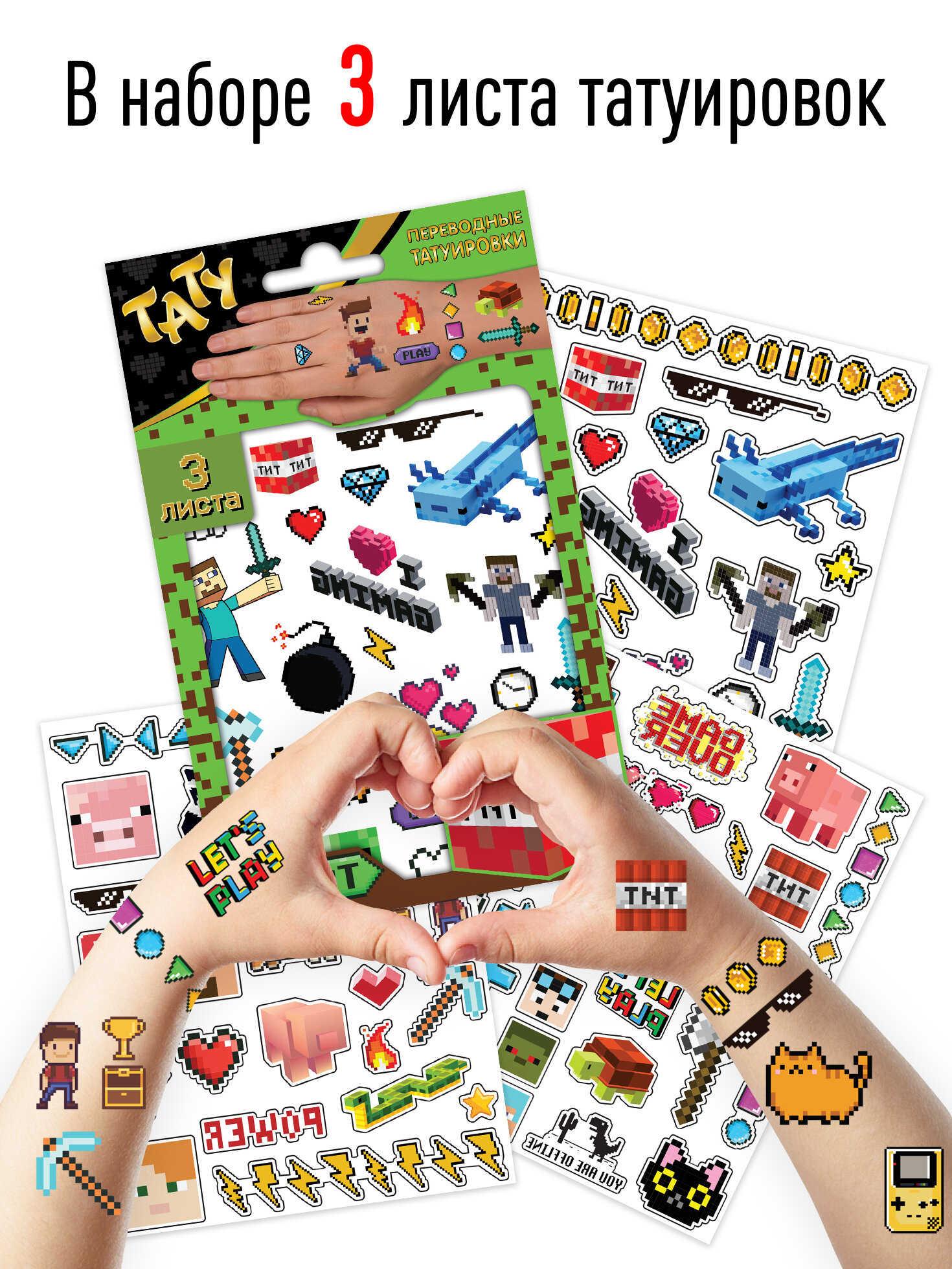 Наклейки - татуировки "Пиксели", 3 листа ND Play информация: