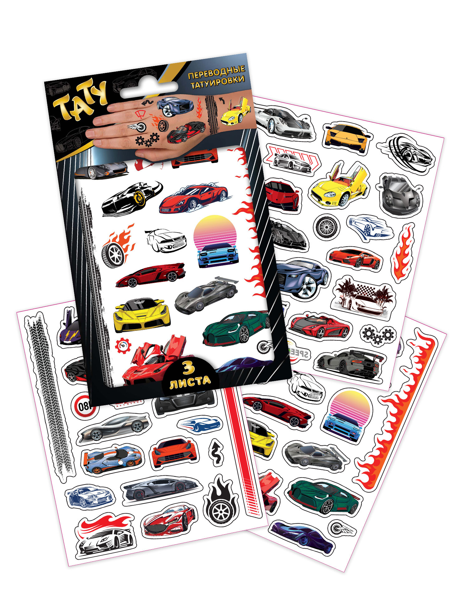 Наклейки - татуировки "Суперкары", 3 листа ND Play ND Play информация: