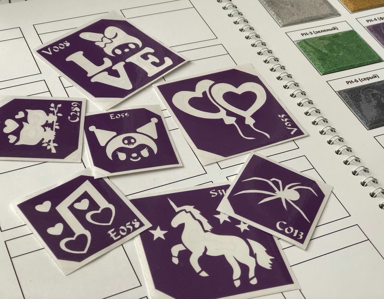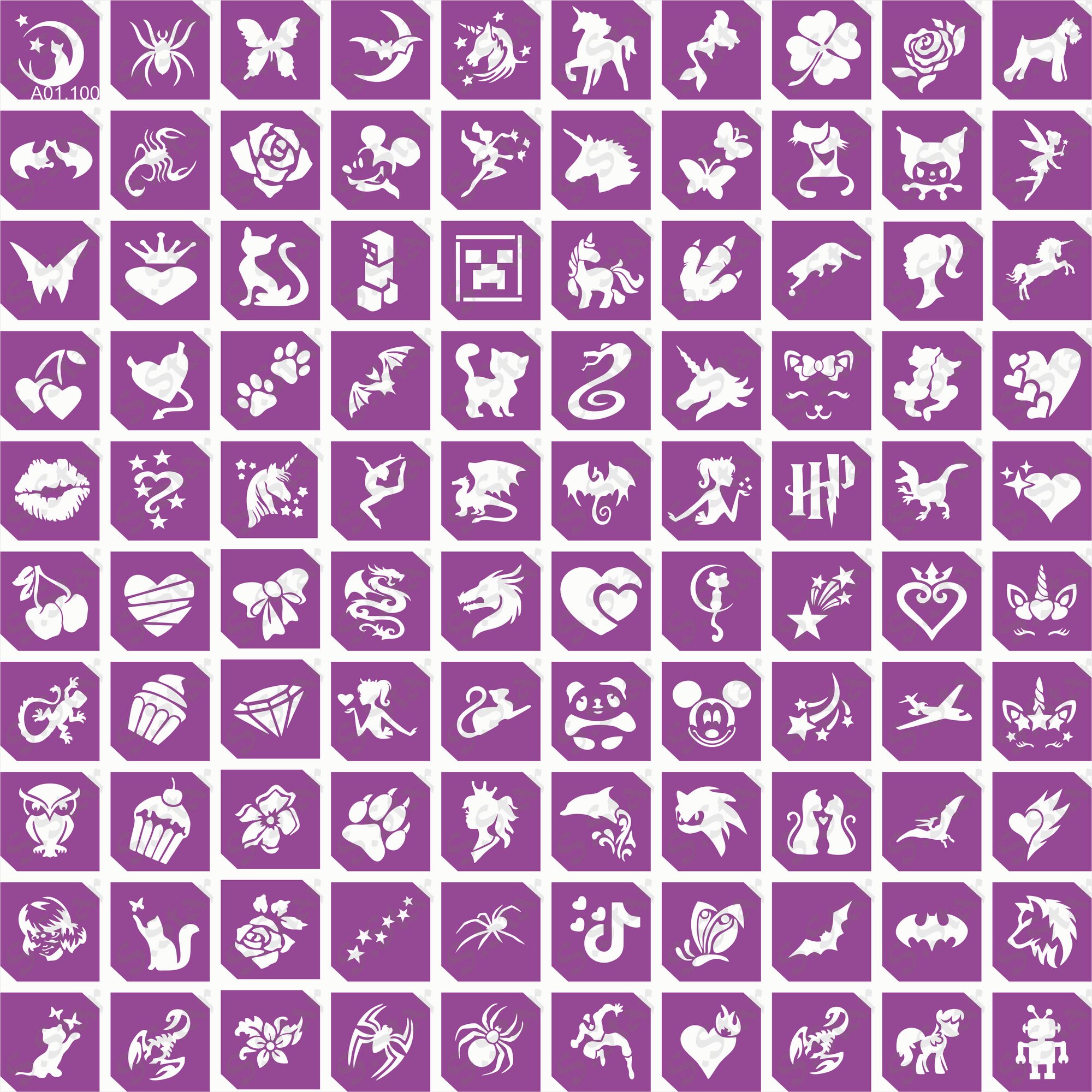 Набор трафаретов для блеск-тату SStar A01.100, трехслойные, размер 5*5 см, 100 шт информация: