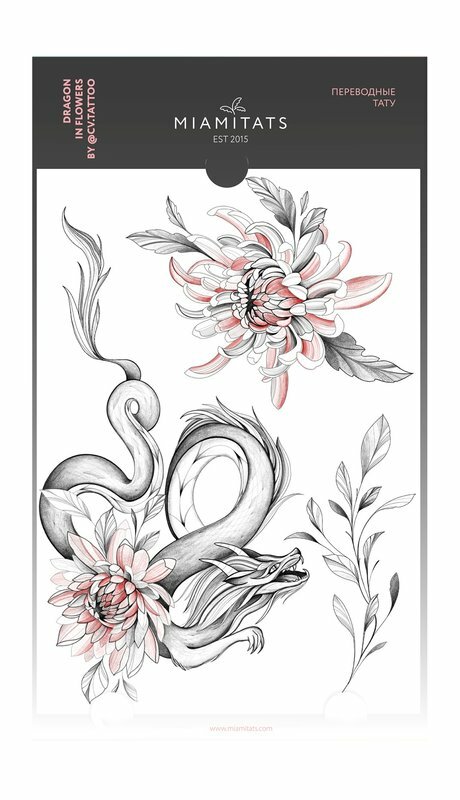 10 цен на Переводные тату Miamitats Dragon In Flowers Maxi Tattoo