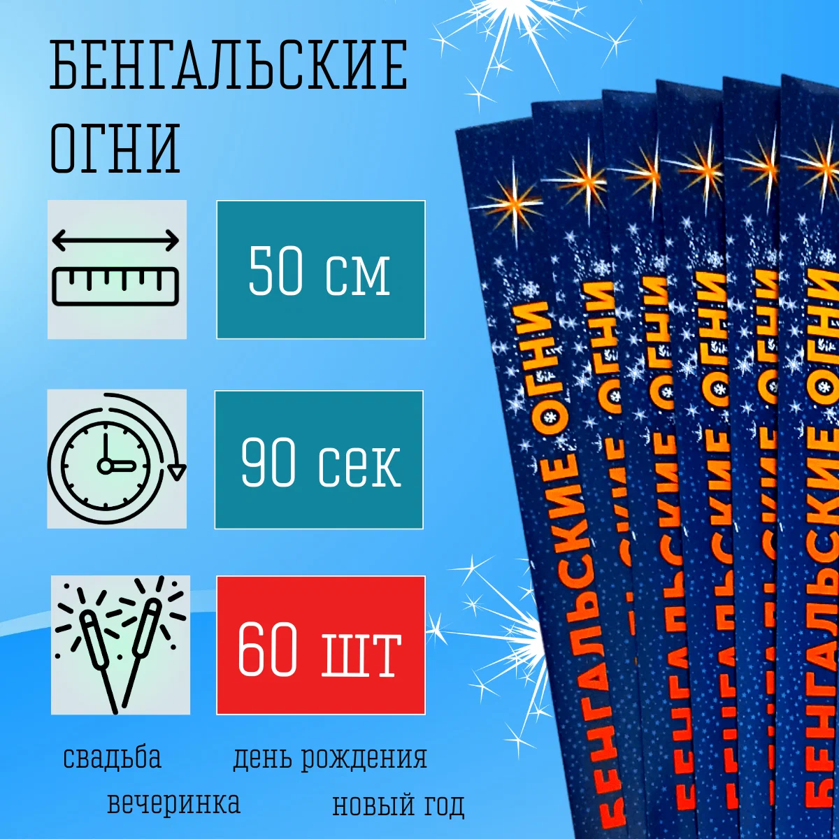 Бенгальские огни 50 см (60 штук) на свадьбу, день рождения, новый год информация: