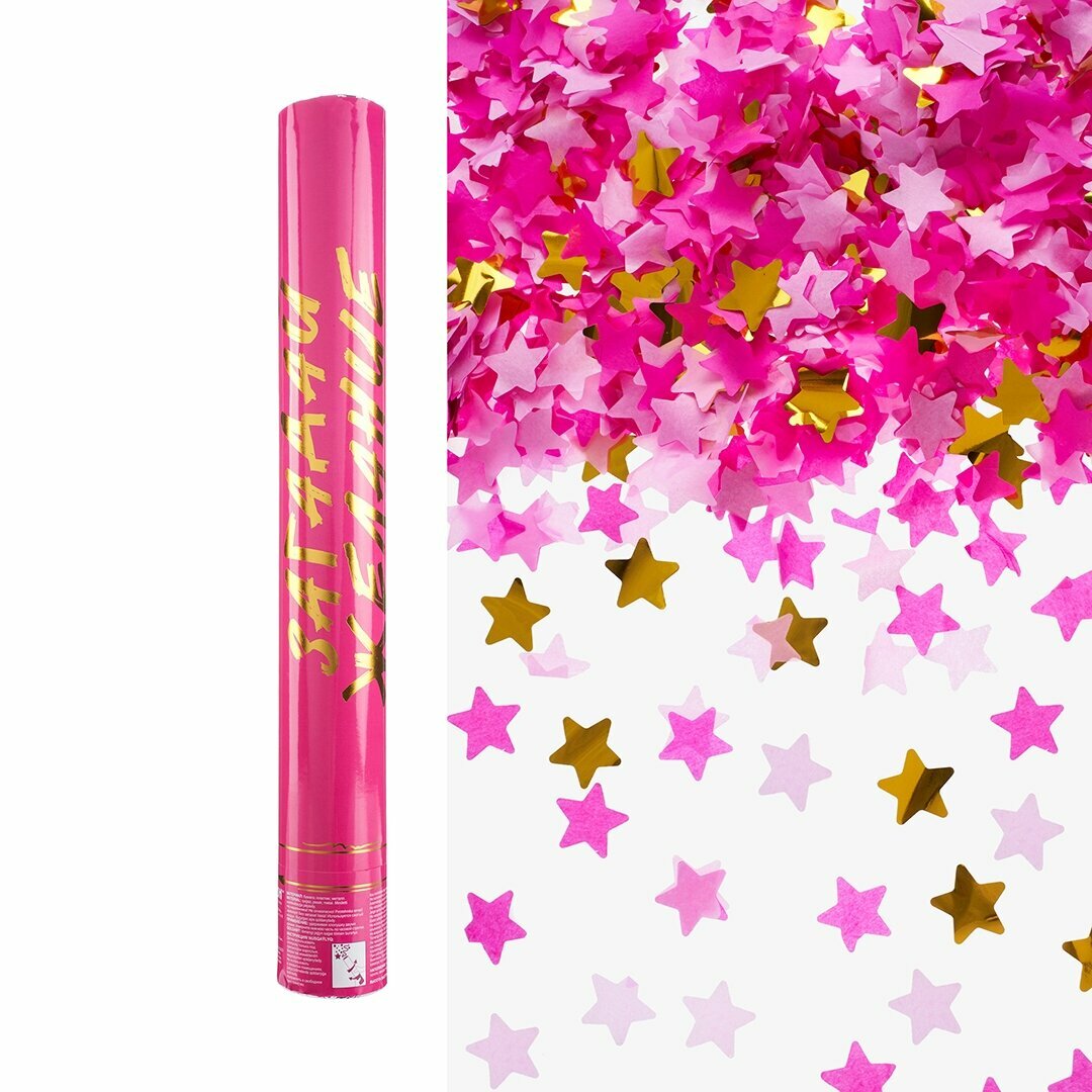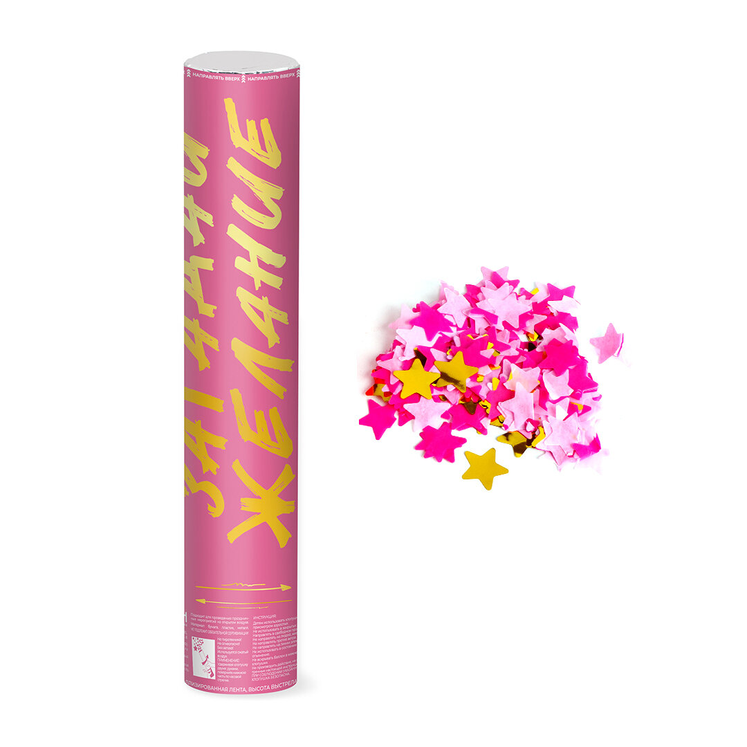 Пневмохлопушка (16/40 см), Загадай Желание, Звезды фольга и тишью, Розовый/Золото, 1 шт. информация: