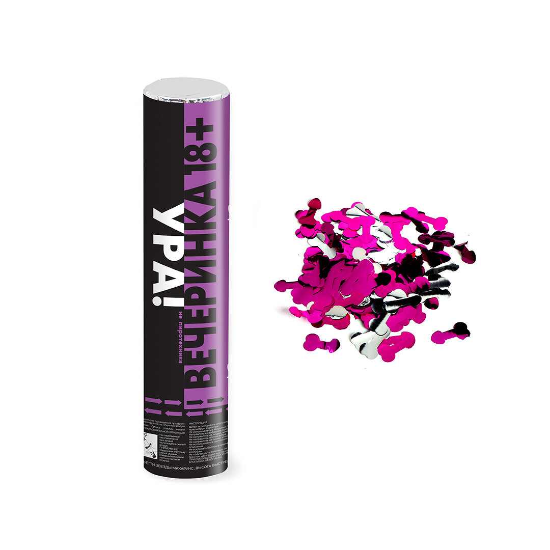 Пневмохлопушка (12/30 см), Плейбой 18+, Конфетти фольга, Фуше/Серебро, 1 шт. информация: