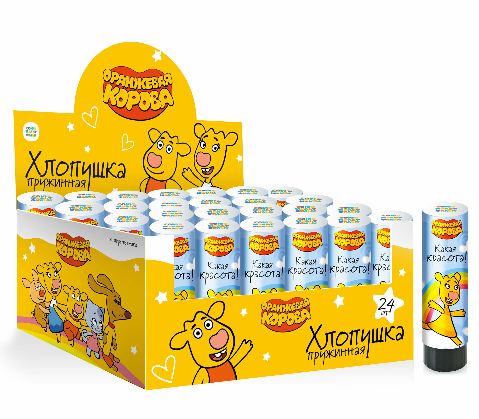 Хлопушка пружинная (4/10 см), Оранжевая корова, Звезды тишь 286 ₽