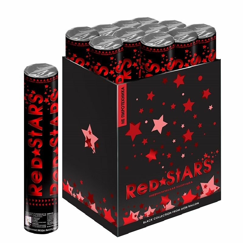 Пневмохлопушка (12/30 см), Металлизированные звезды, Красный, 1 шт. информация: