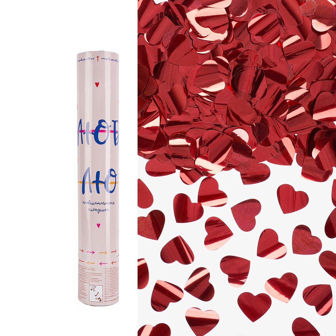 Пневмохлопушка (12/30 см), Люблю, Сердца фольга, Красный, 1 шт. информация:
