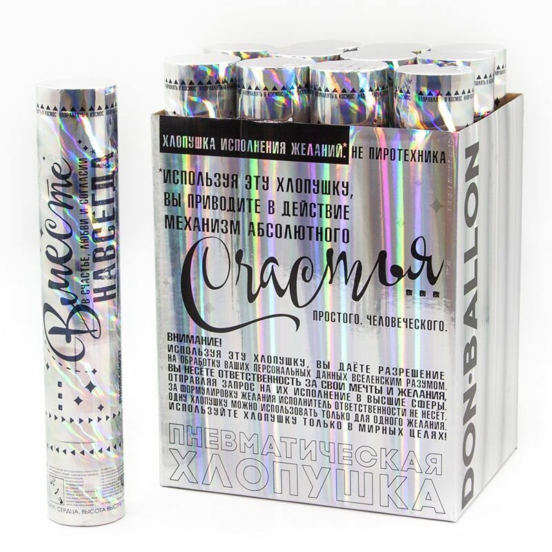 Хлопушка пневматическая "Счастья в Новом Году", 30 см, вид хлопушки: пневматическая