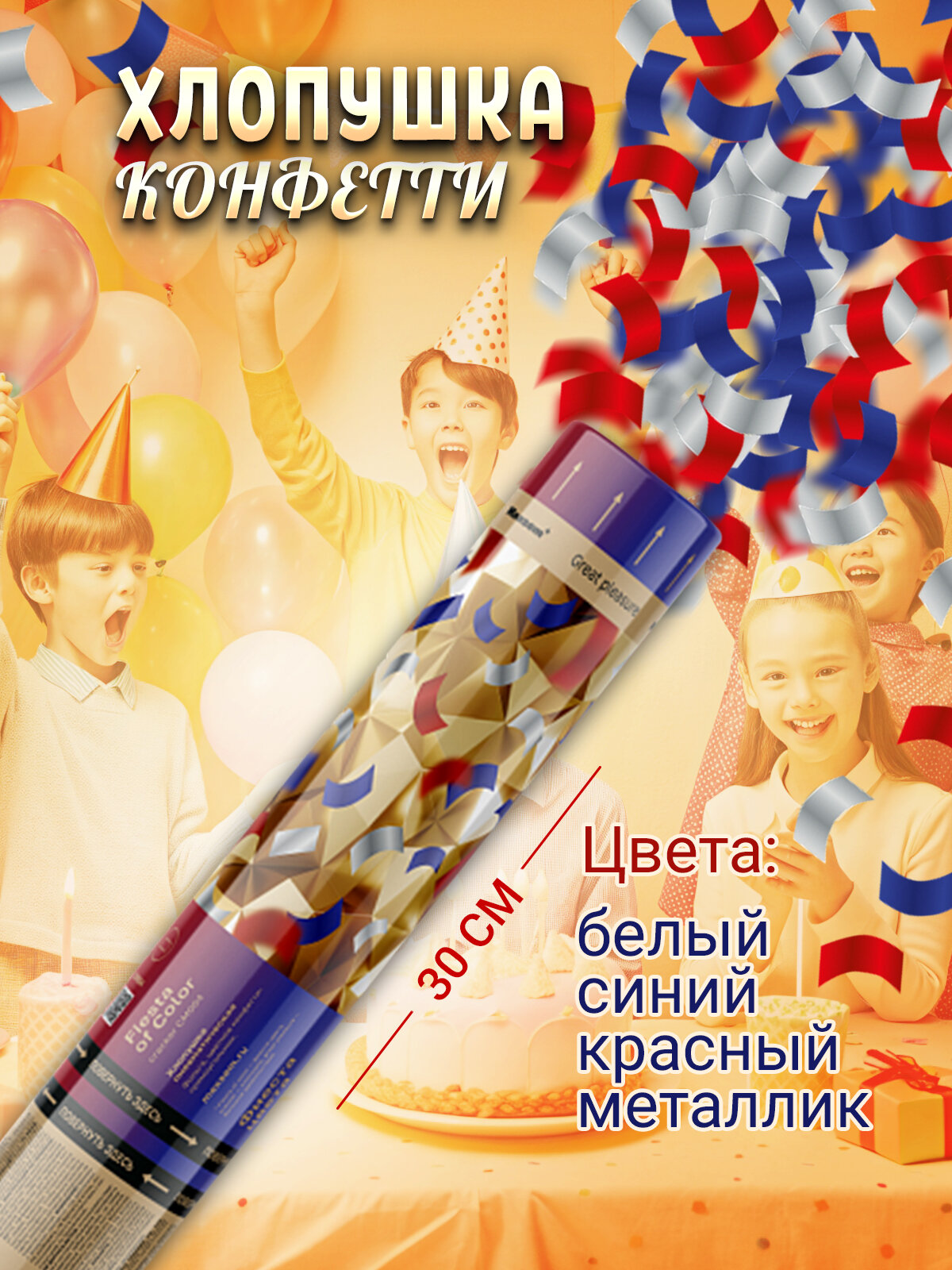 Пневматическая хлопушка на праздник разноцветное конфетти 30 см, в наборе 6 штук 2 760 ₽