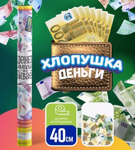 10 цен на Хлопушка на праздник 40 см, Деньги, наполнитель Доллары, Евро