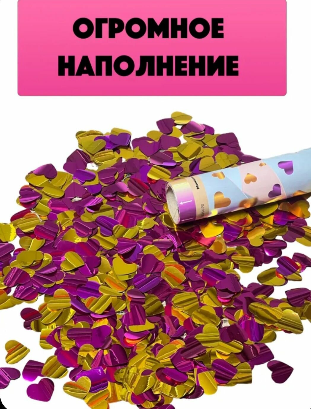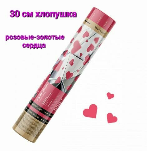 Набор из 6 шт. Хлопушка пневматическая 30 см, фольга, сердечки, красный