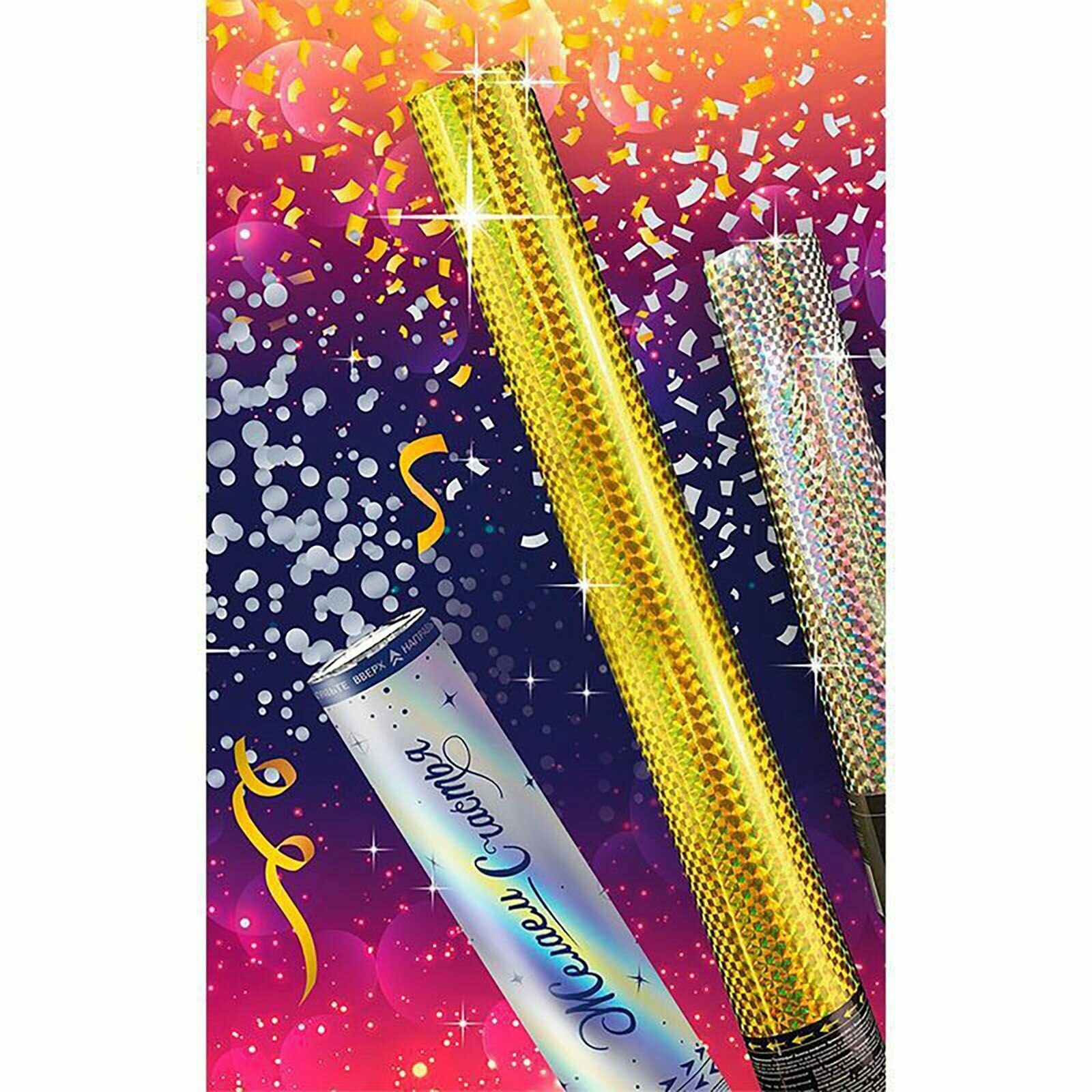 10 цен на Пневмохлопушка "Голография" Золотое конфетти / 30 см / 1 шт.
