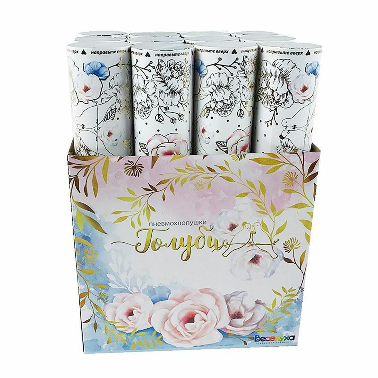 Пневмохлопушка Голуби с золотой печатью (тиснение) / 30 см / 1 шт. информация: