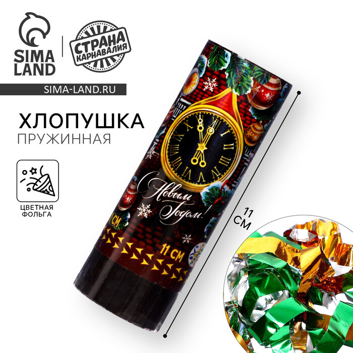 Хлопушка пружинная поворотная «С Новым годом!», куранты, 11 см информация: