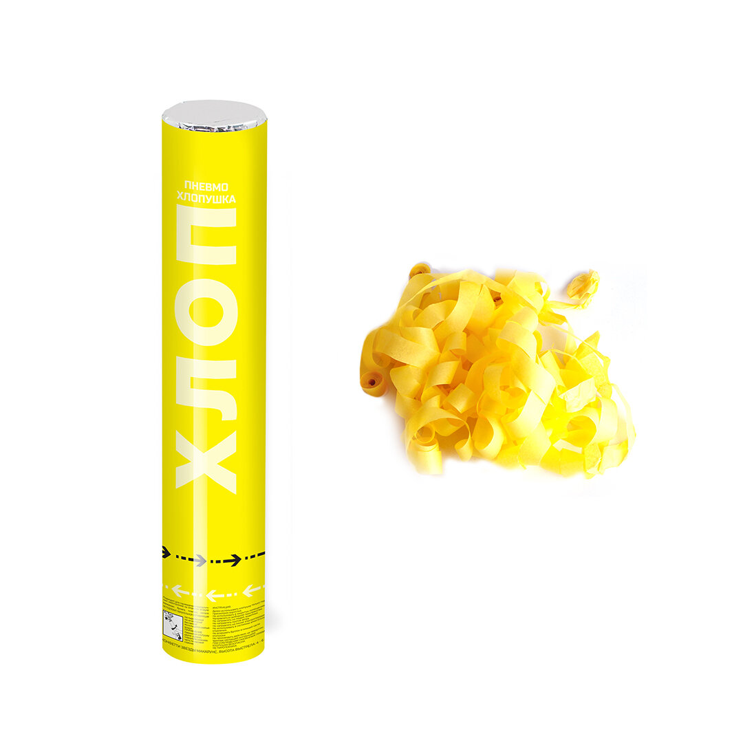 Пневмохлопушка (12/30 см), Хлопни, Серпантин тишью, Желтый, 1 шт. информация: