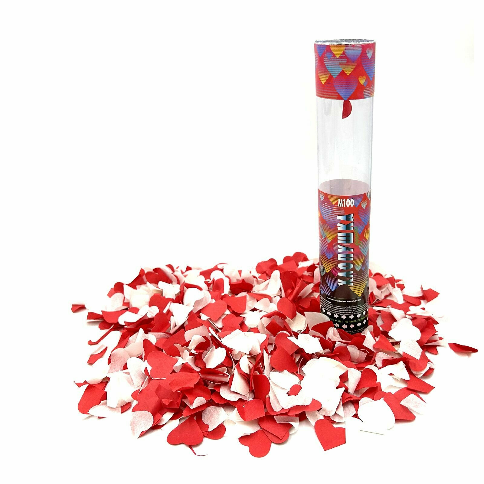 Праздничная хлопушка 30 см с 3см красными + 3см белыми сердцами из бумаги - 1 шт. / М100 марксан / хлопушка пневматическая информация: