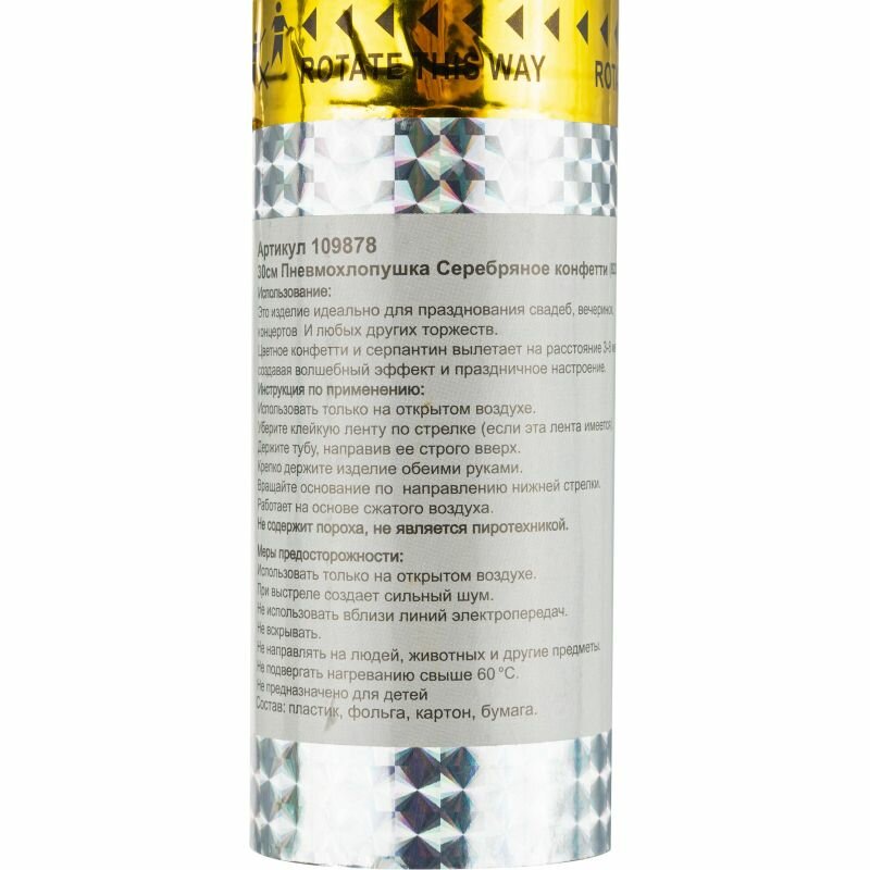 Хлопушка пневматическая в пластиковой тубе 30 см Серебряное конфетти, 109878 информация: