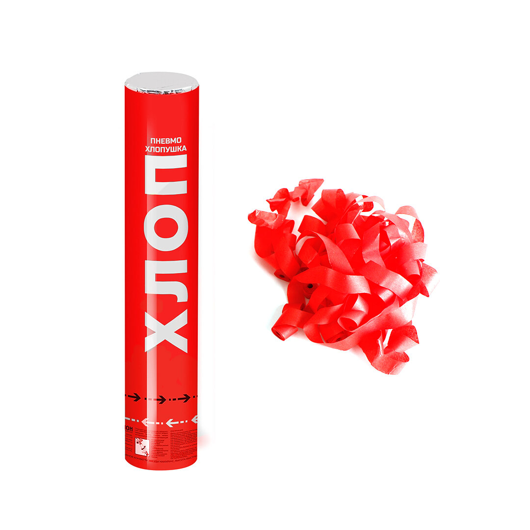 Пневмохлопушка (12/30 см), Хлопни, Серпантин тишью, Красный, 1 шт. информация: