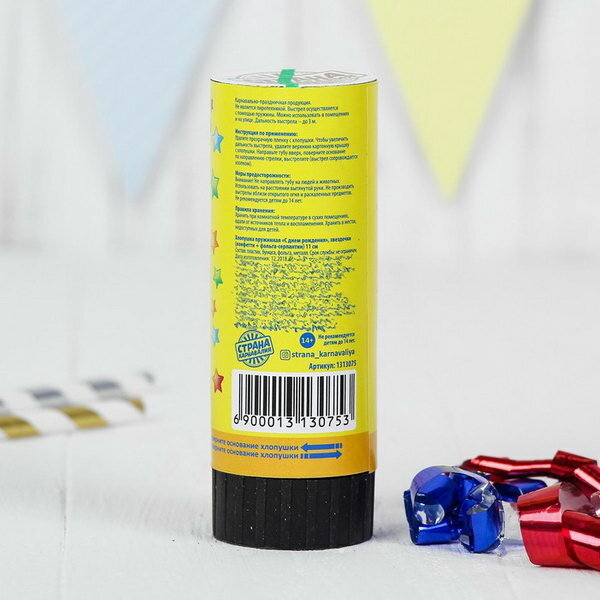 Отзывы на Хлопушка пружинная "С Днём Рождения", звёздочки, конфетти, фольга, серпантин, 11 см