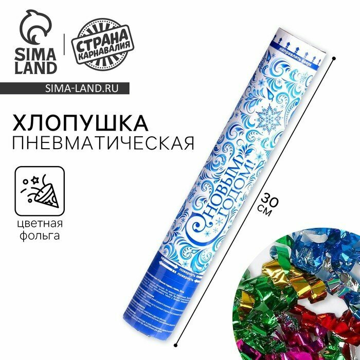 Хлопушка пневматическая поворотная «С Новым годом!», 30 см фольга, бумажные вложения с пожеланиями информация: