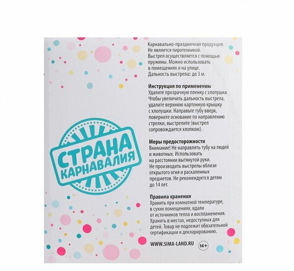 0 отзывов, средняя оценка 0. Чтобы купить «Хлопушка пружинная "Счастливого года", конфетти, фольга, поворотная, 20 см» по лучшей цене мы сканируем авито, алиэкспресс, маркет, озон, савеловский, плеер, горбушку, беру, официальные сайты и находим минимальную. Администрация не несет ответсвенность актуальность цен на Хлопушка пружинная "Счастливого года", конфетти, фольга, поворотная, 20 см, более подробно узнавайте на сайте магазина.