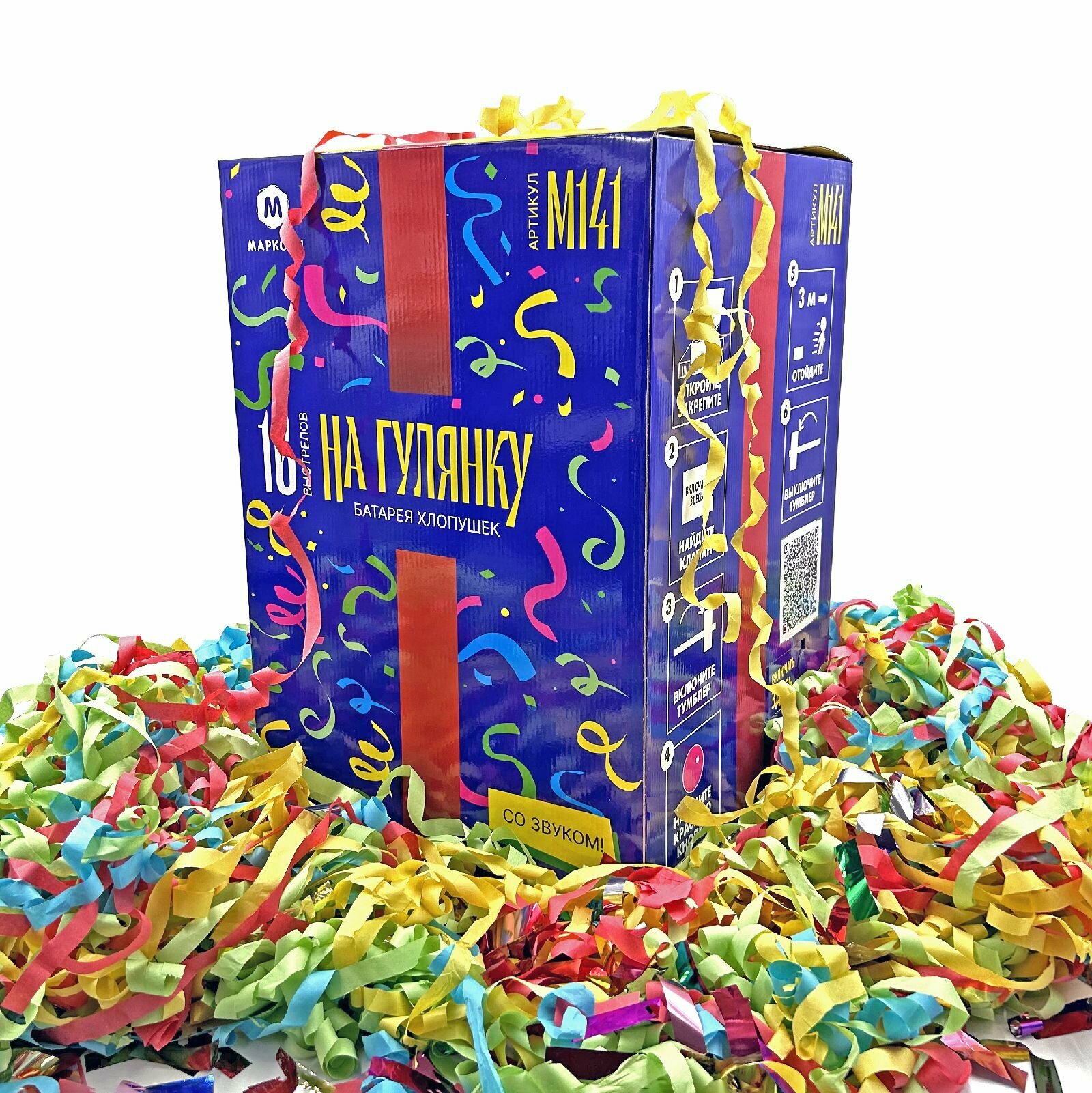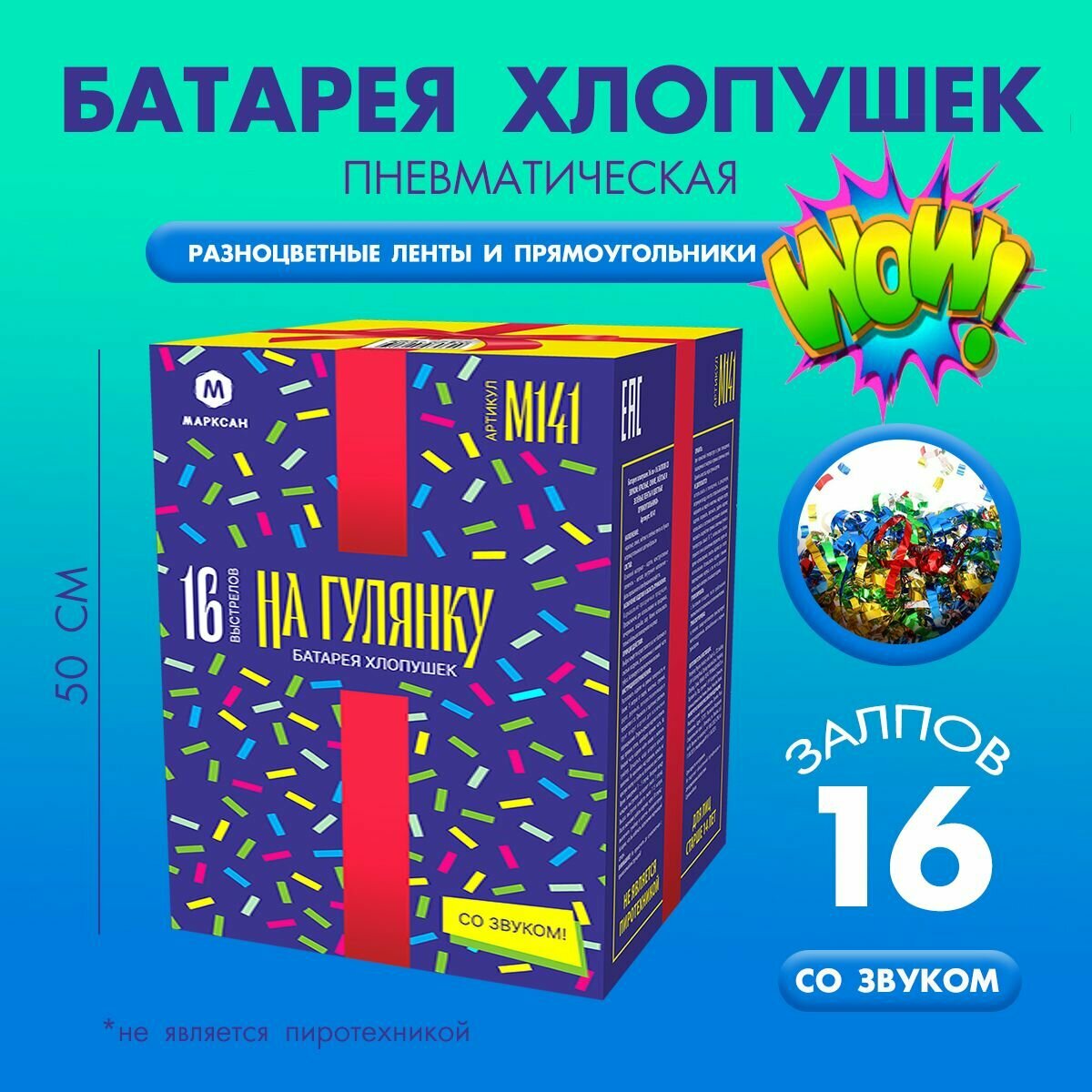 Отзывы на Праздничная батарея хлопушек 16 залпов со звуком разноцветные ленты и прямоугольники - 1 шт. / М141 марксан / хлопушка пневматическая