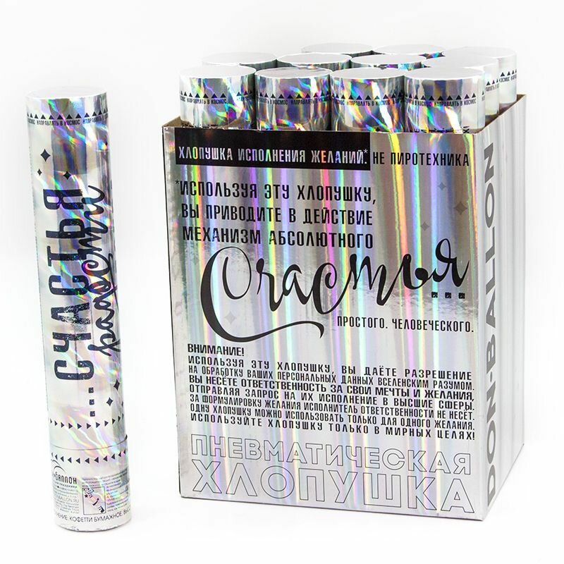 Пневмохлопушка (12/30 см), Счастья, Радости, Добра, Металлизированные круги, Ассорти, Голография, 1 информация: