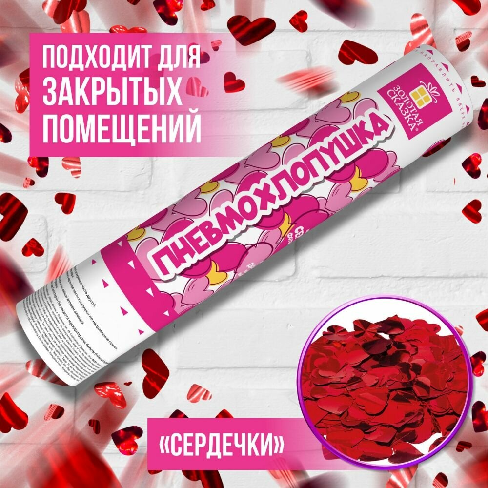 Отзывы на Набор из 6 шт. Хлопушка пневматическая 30 см, фольга, сердечки, красный