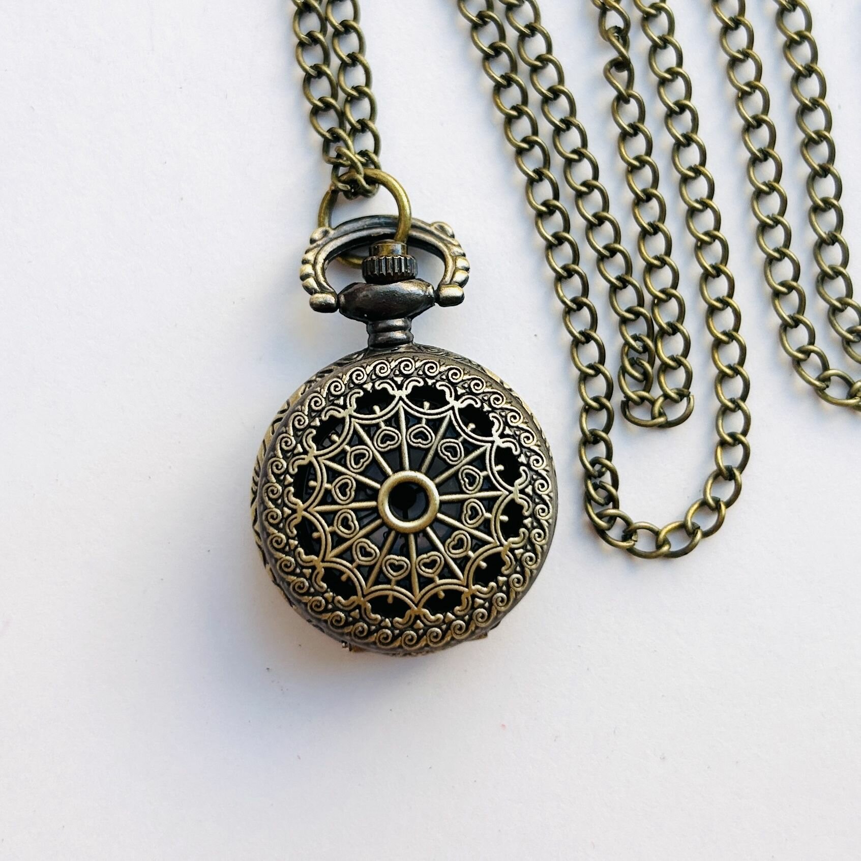 Часы-Кулон на Цепочке в Винтажном Состаренном Стиле (Диаметр - 2,5 см) "Паутина" (Поставляются в Подарочной Коробочке) информация: