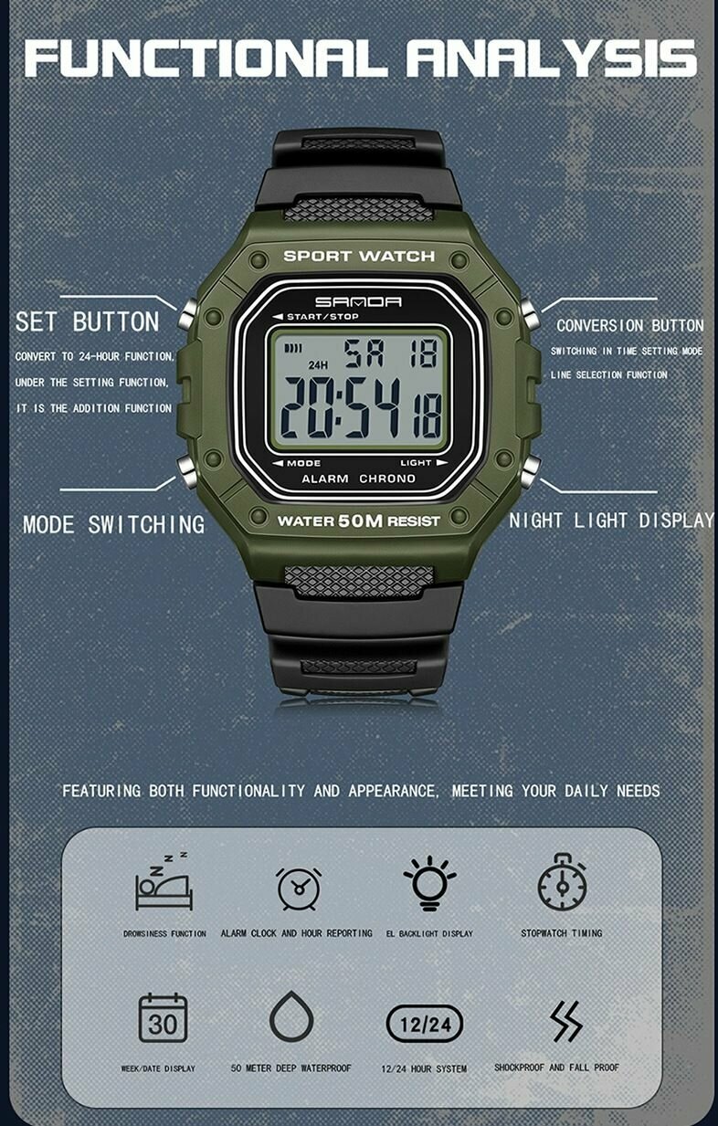 Наручные часы Sanda, хаки, черный информация: