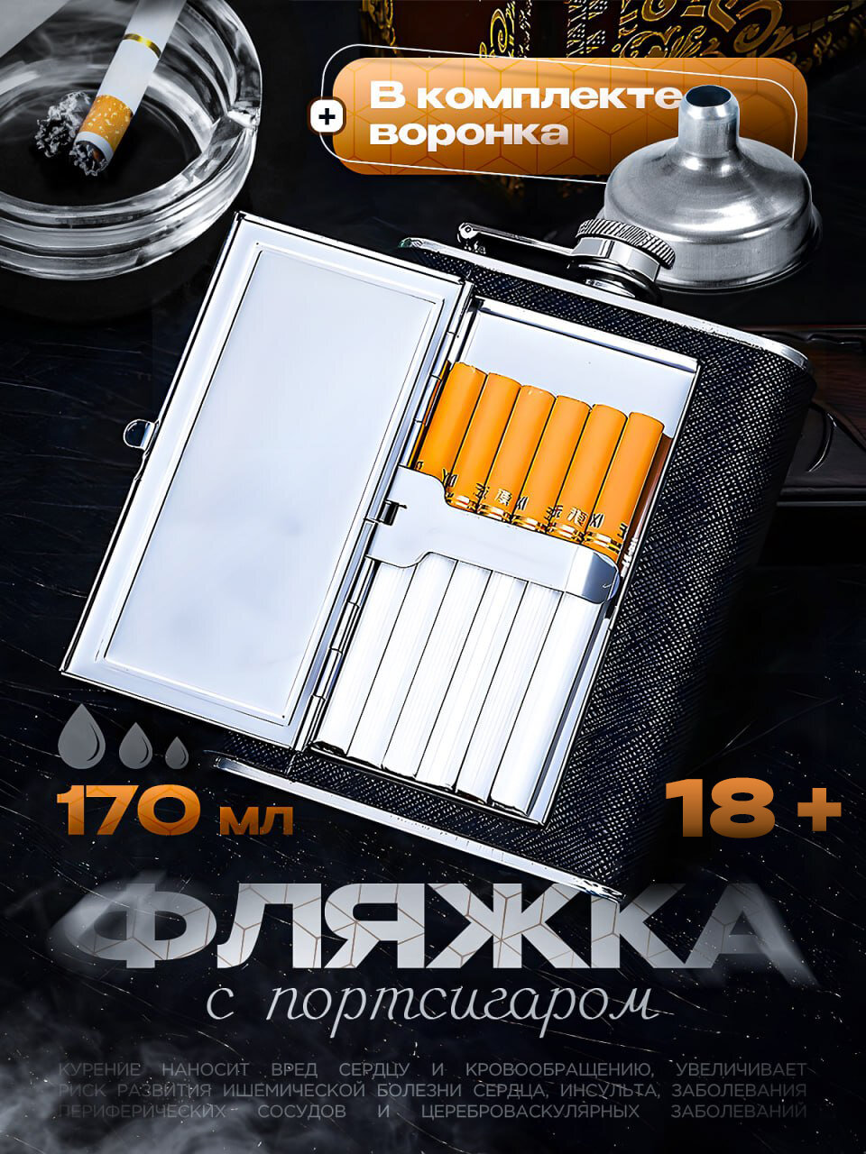 Фляга для алкоголя с Портсигаром 170 мл информация: