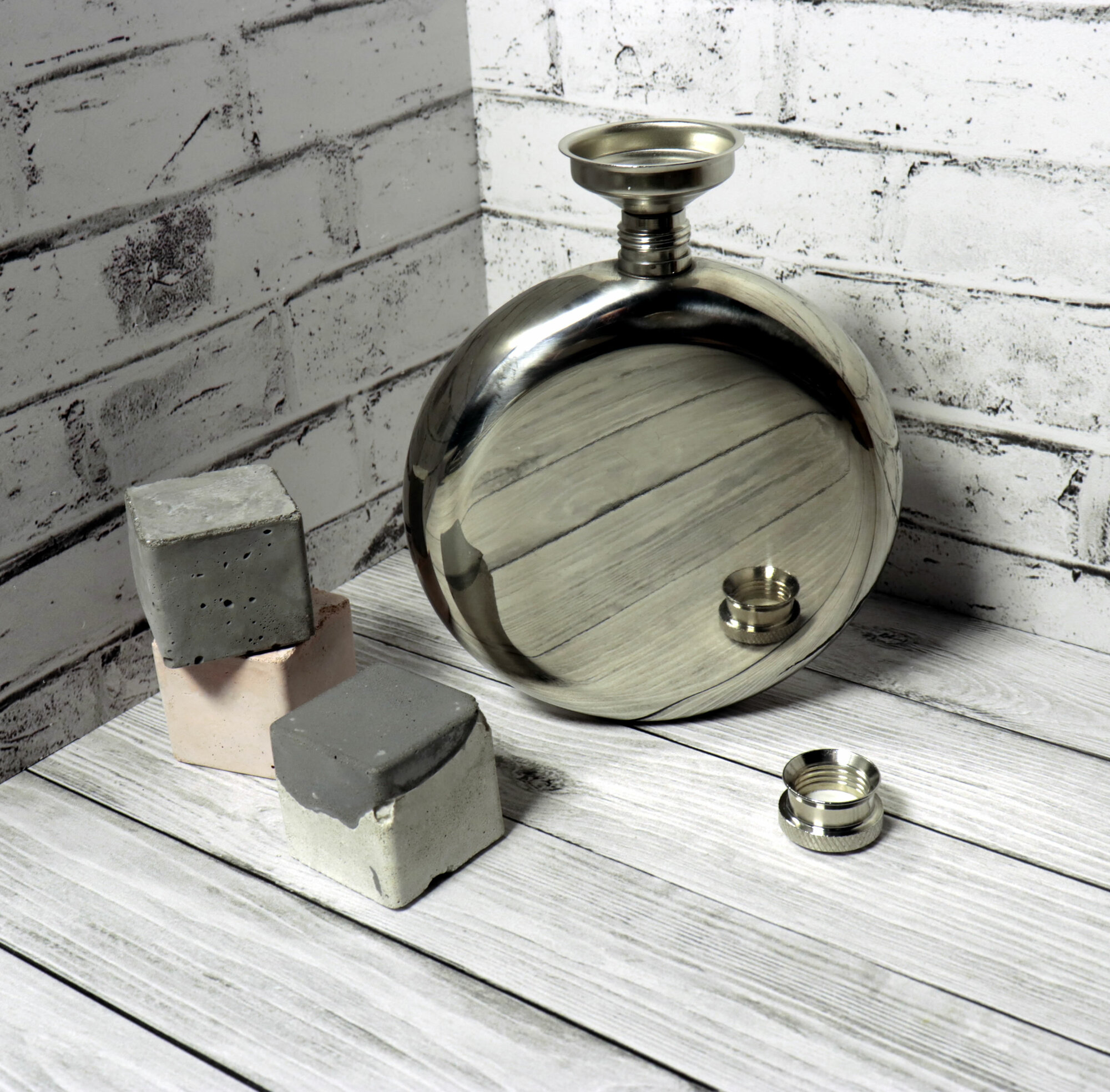 Фляжка круглая металлическая (232 мл) с воронкой в комплекте информация: