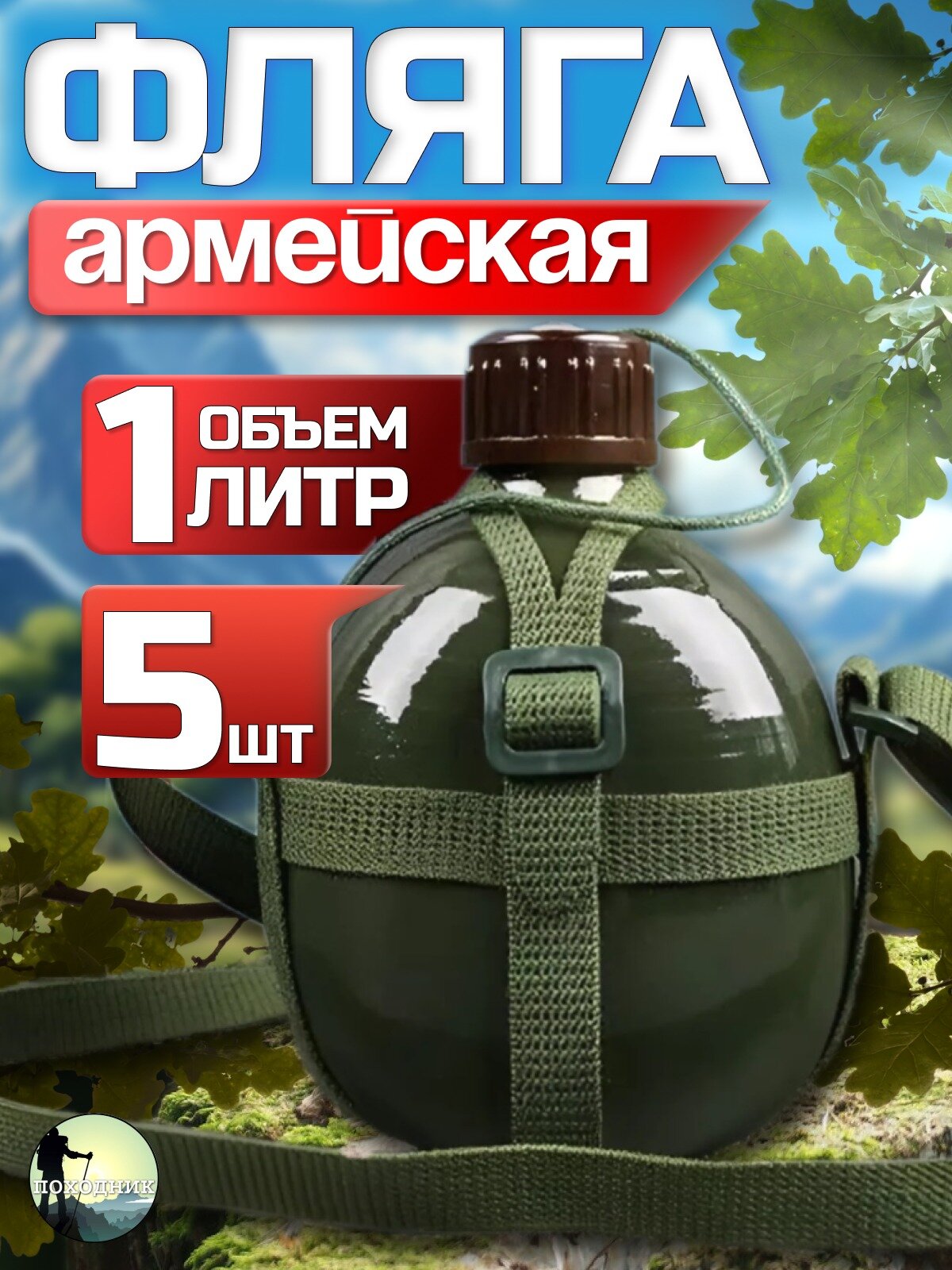 10 цен на Фляжка армейская для воды, тактическая. Фляга алюминиевая 1литр 5шт