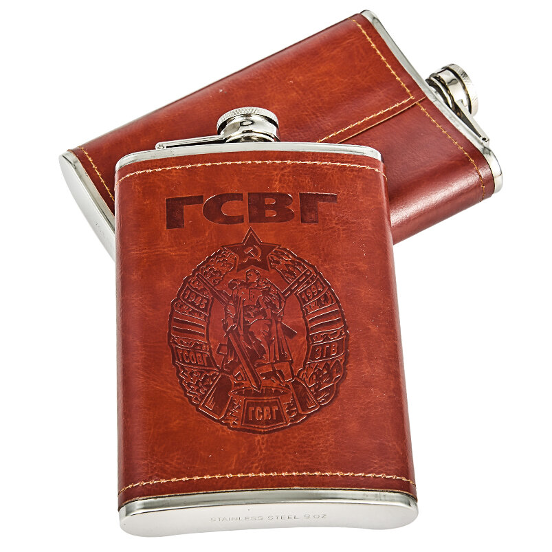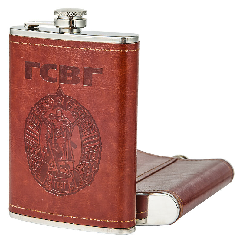 10 цен на Подарочная фляжка ветерану ГСВГ, объем 9 Oz = 255мл, пищевая сталь