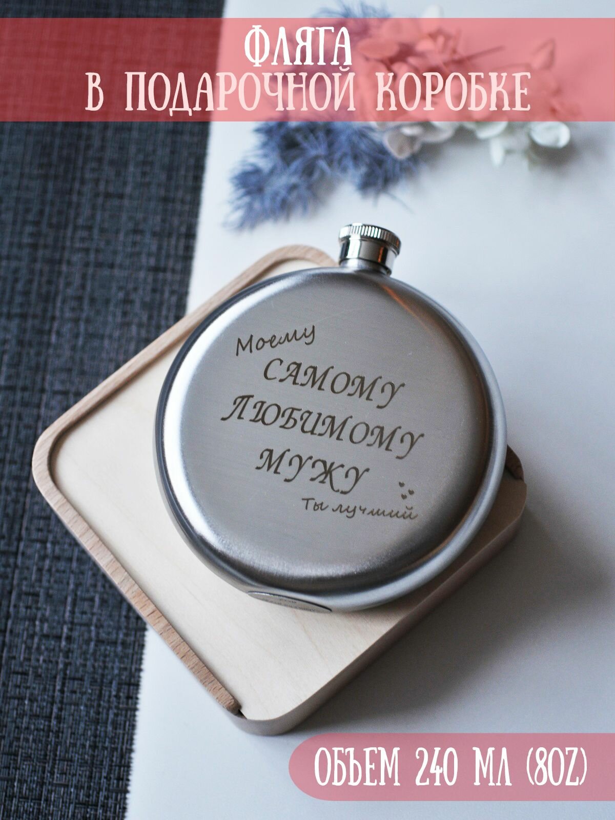 Фляга круглая металлическая RiForm с гравировкой "Самому любимому мужу" в коробке, 240мл, нержавеющая сталь информация: