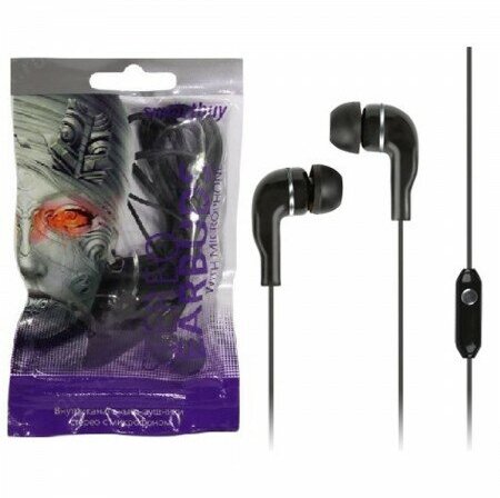 Наушники-вкладыши с микрофоном SmartBuy S4, 1м, черный, 321318 374 ₽
