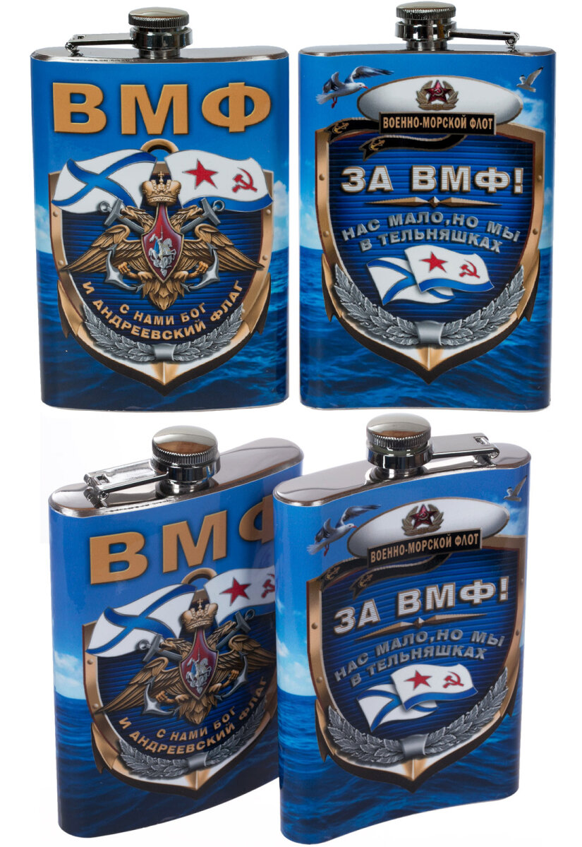 10 цен на Фляжка Военпро "За ВМФ", сталь, синий, авторский дизайн, 0,33 л