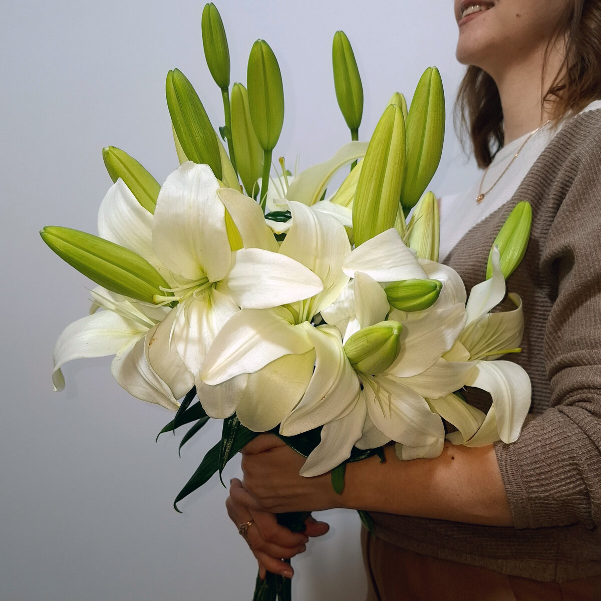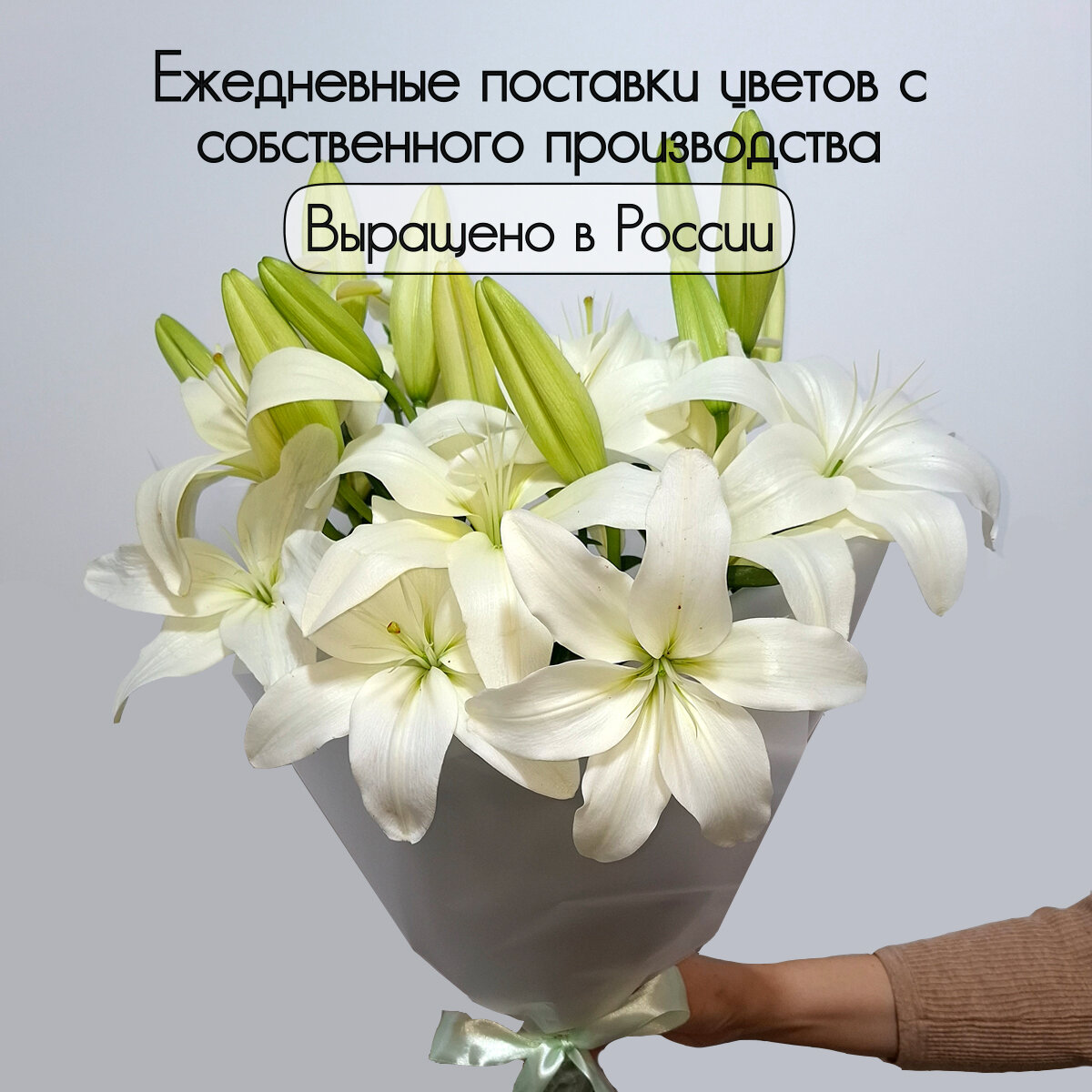 10 цен на Монобукет крупных белых лилий, 9 стеблей, высота 60 см. Florentika